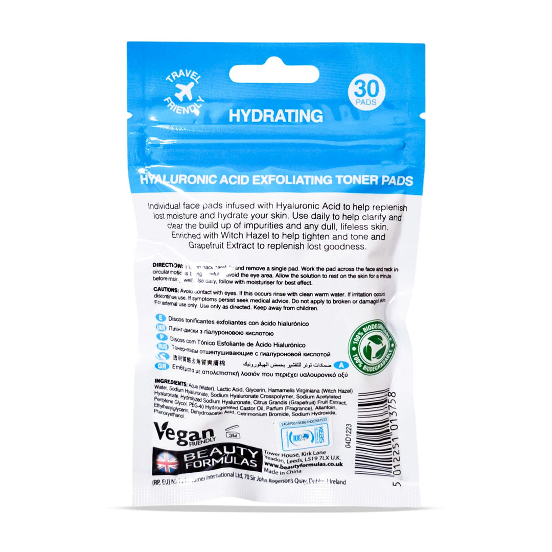 BEAUTY FORMULAS HYALURONIC ACID EXFOLIATING. TONER PADS 30'S. EXFOLIATINGing toner pads to cleanse and smooth skin. Swipe gently over face. Store in a Cool Dry Place.