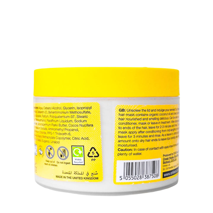 ENLIVEN HYDRATING 3IN1 HAIRMASK BANANA & COCONUT 350ML. Hair mask for deep conditioning and hydration. Leave in for 5–10 minutes. Store in a Cool Dry Place.