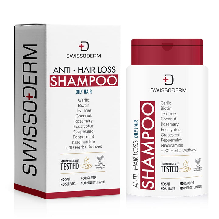Say goodbye to greasy roots and thinning strands with Swissoderm Anti-Hair Loss Shampoo for Oily Hair. Expertly formulated to combat excess sebum while addressing hair fall, this shampoo purifies the scalp, reduces buildup, and strengthens hair from the root. Perfect for oily hair types in need of balance and volume.