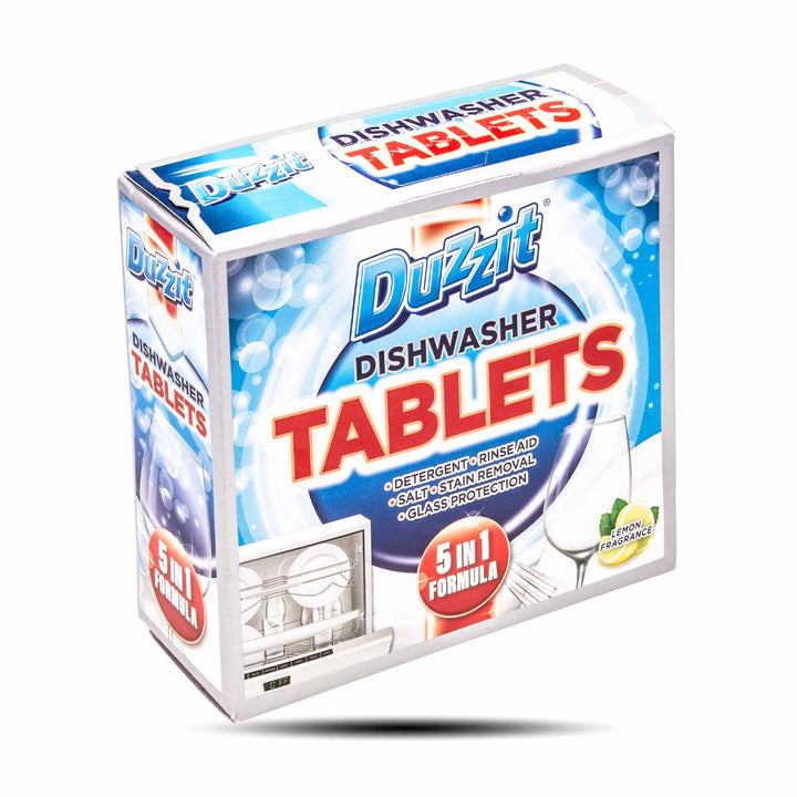 151 DUZZIT DISHWASHER TABLETS 12PK. Powerful tablets for sparkling clean dishes. Cuts through grease and food residue in one wash. Use one tablet per load. Store in a Cool Dry Place. Keep Out of Reach of Children and Pets.
