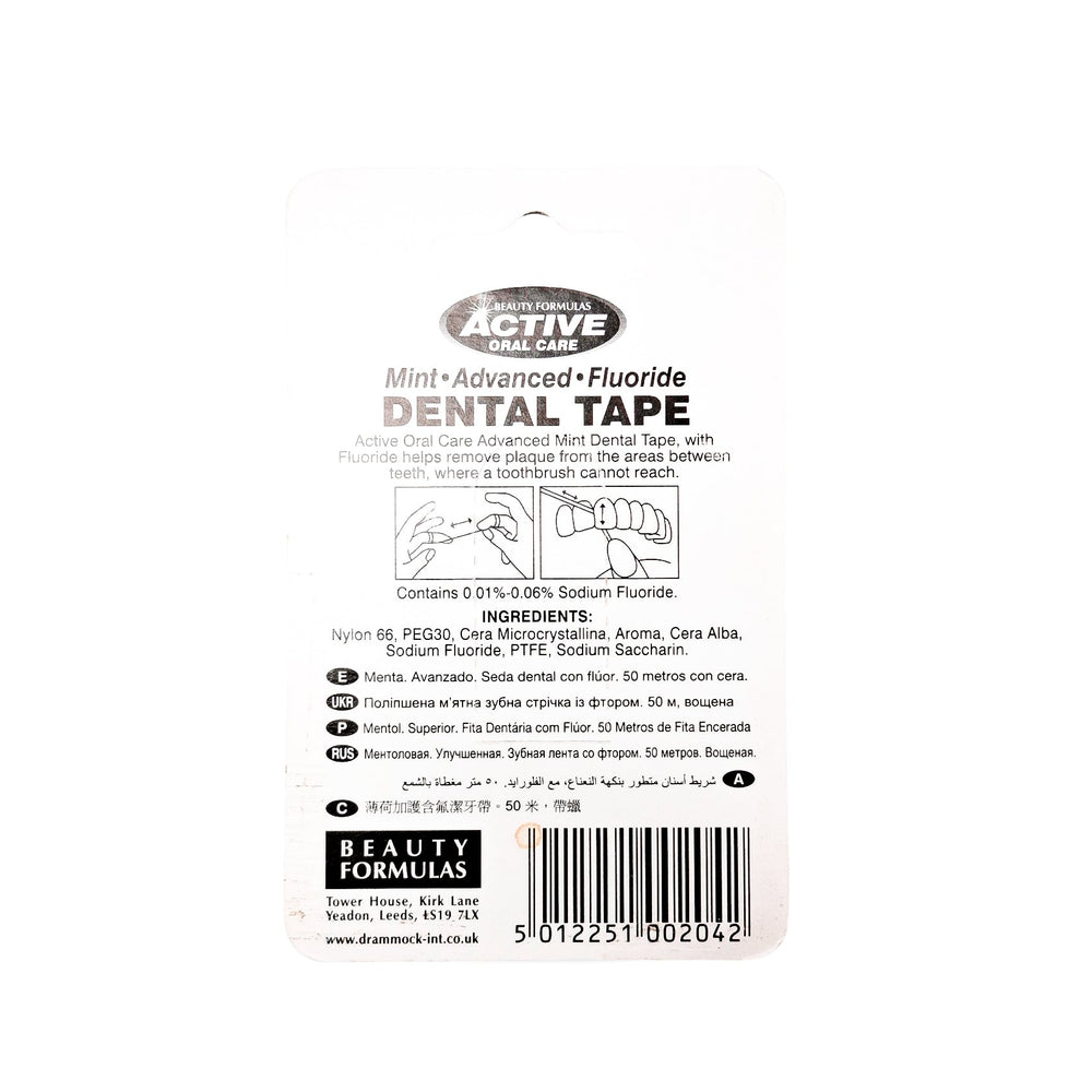 ACTIVE MINT WAX. FLOURIDE DENTAL TAPE 50M. Oral care essential for daily hygiene. Use as directed. Store in a Cool Dry Place.
